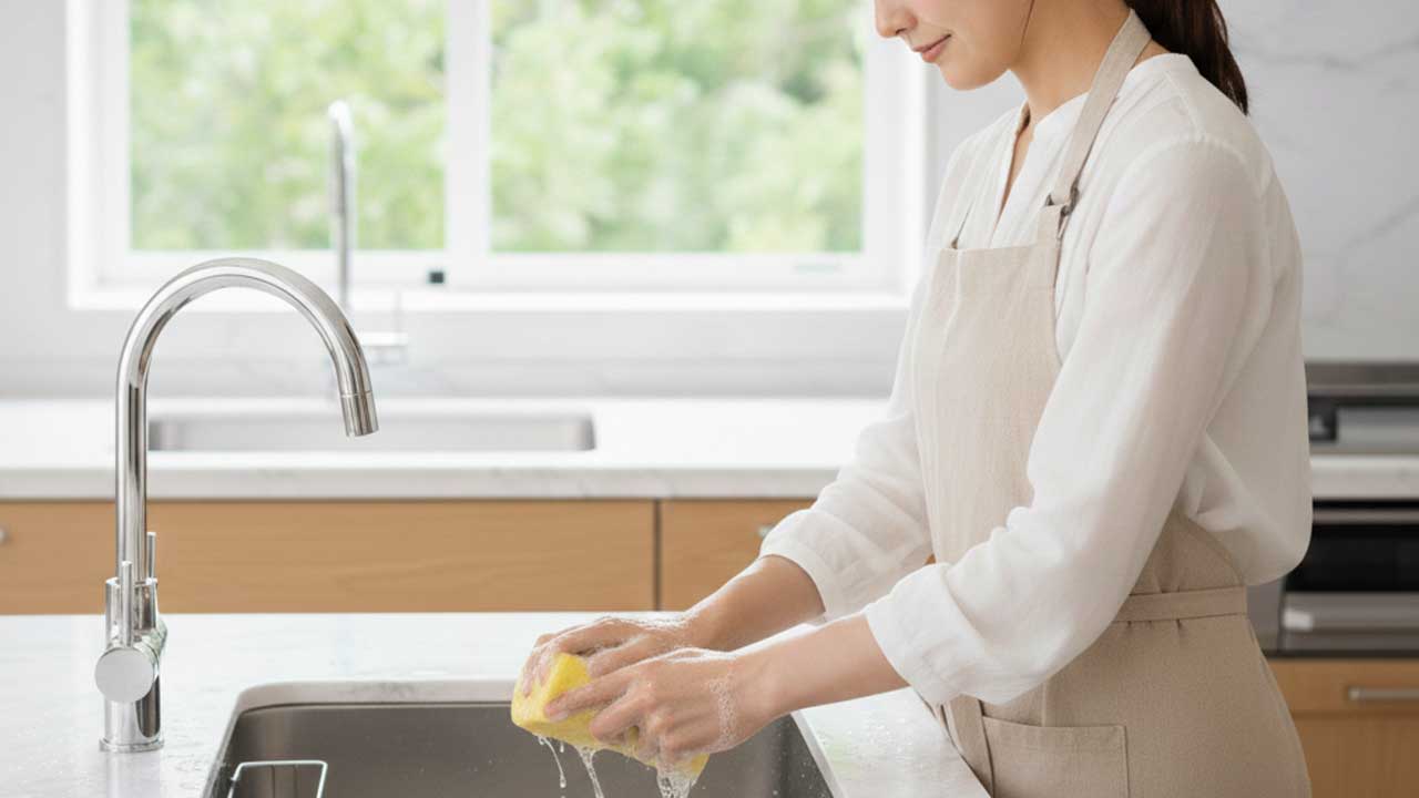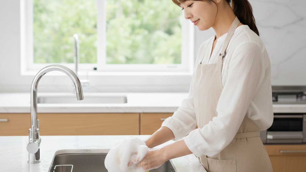 スポンジのニオイは、特別な洗剤や難しい工程がなくても防ぐことができます。大切なのは「汚れを残さない」「水分を残さない」「雑菌を増やさない」という3つの意識です。毎日の小さな習慣が、臭い戻りを防ぐいちばんの近道になります。