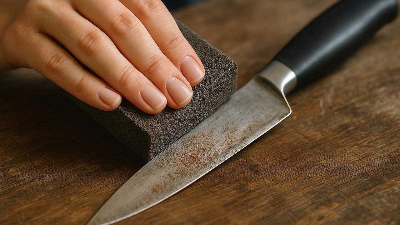 軽いサビならクレンザーや専用消しゴムで十分対応でき、頑固なサビも段階的に処置すれば進行を止めることができます。ただし、金属たわしや漂白剤などの強い方法は、包丁を傷める原因になるため避けましょう。