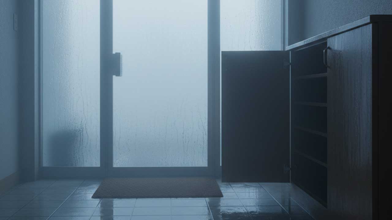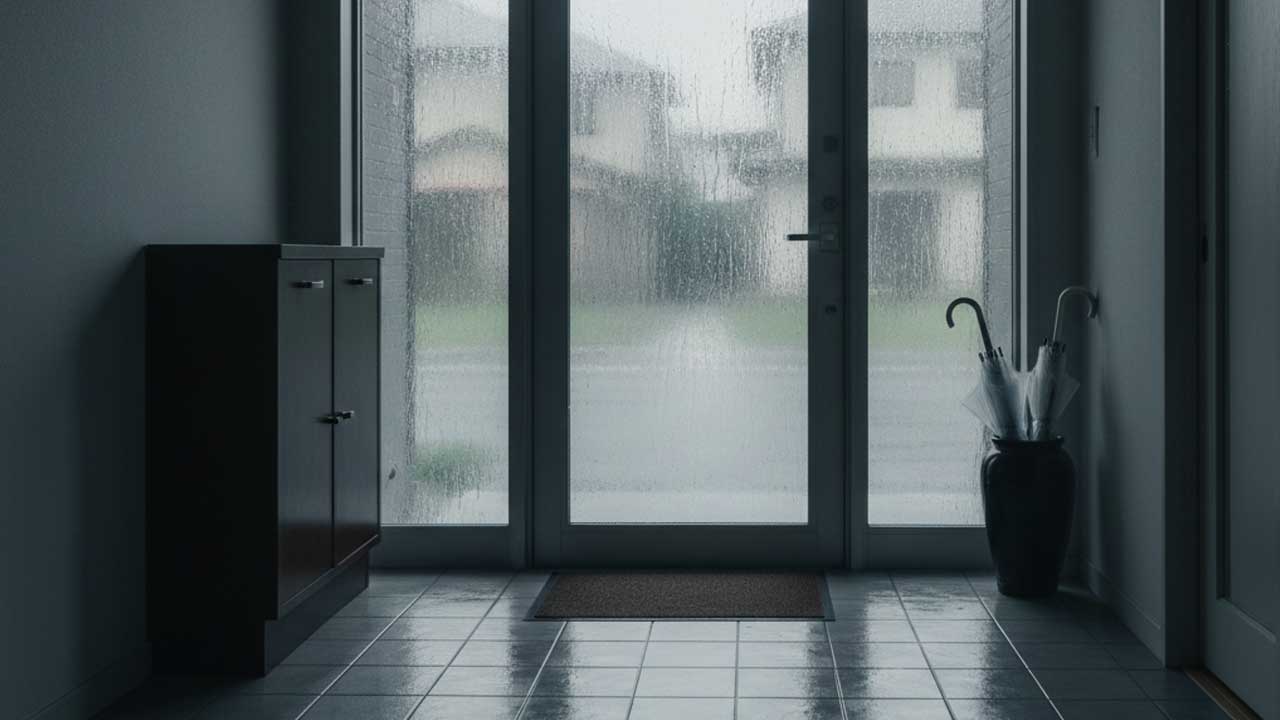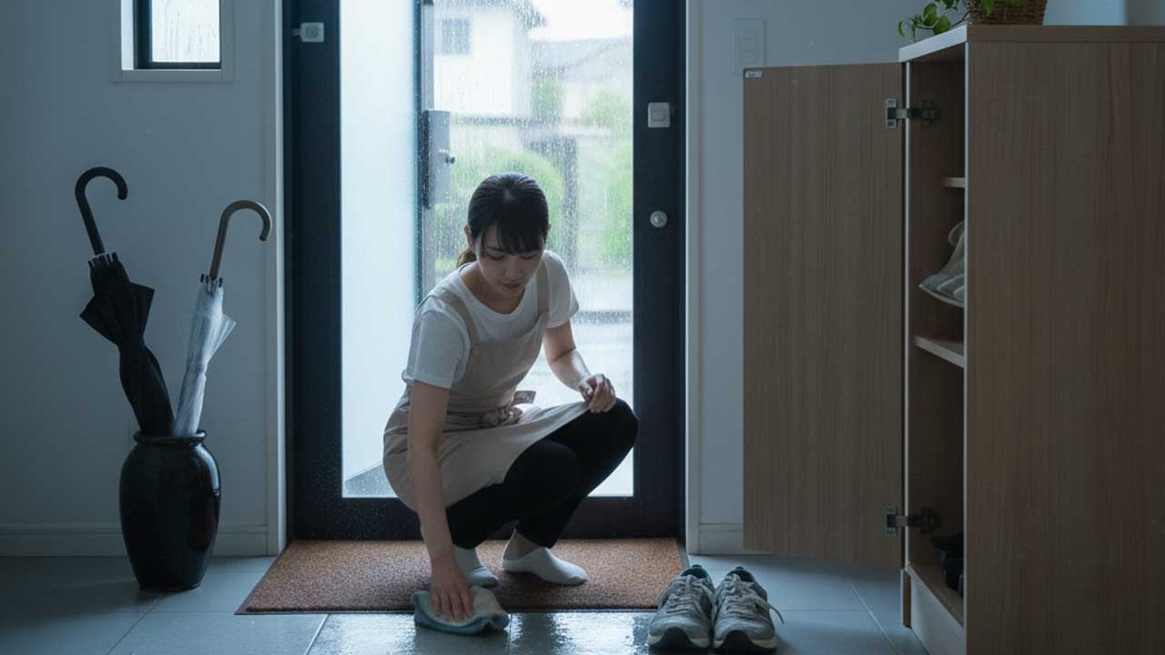 雨の日は空気が重たいから、玄関にも湿気が残りやすいんだよ