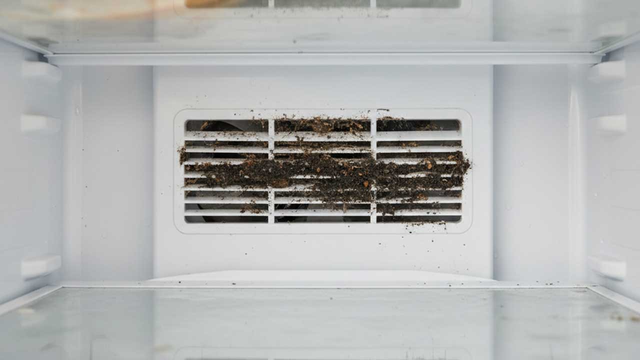 冷蔵庫の奥にある冷気の吹き出し口は、庫内の空気を循環させる重要な通り道です。ここにホコリや食品の微細なカスが付着すると、そこに菌が繁殖し、冷気とともにニオイが全体へ広がってしまいます。