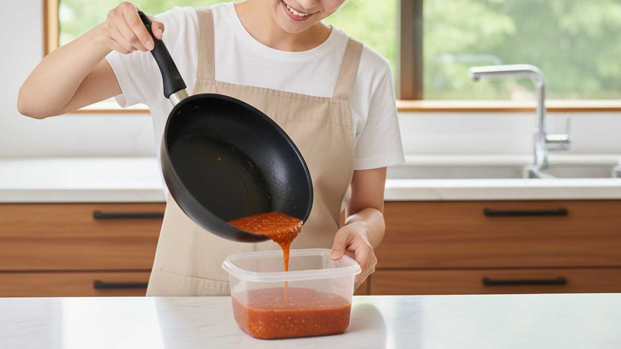 次に大切なのが、ラップを一枚敷いてから保存する方法です。カレーやミートソースのように油分が多い料理は、直接容器に触れさせないだけで臭い移りがかなり軽減します。ちょっとしたひと手間ですが、後の洗浄がぐっと楽になります。