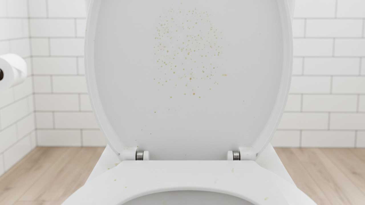 男性の立ち小便や子どもの使用時には、思っている以上に尿が飛び散っています。床や便器の外側、便座の裏などに細かい飛沫が広がり、乾燥するとアンモニア臭を放ちます。