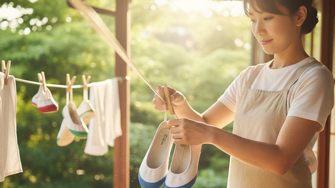 特に布が厚いタイプの上履きは、内部が乾くまでに時間がかかります。