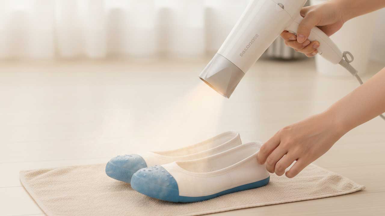 見た目が乾いていても、つま先や中敷きの下には水分が残っていることがよくあります。
